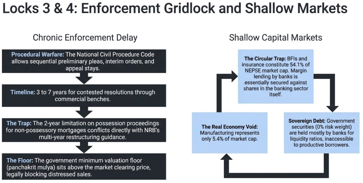 A security right has economic value only to the extent it can be converted to cash within a commercially reasonable timeframe upon default. Nepal’s enforcement system cannot currently do this at the scale required.
