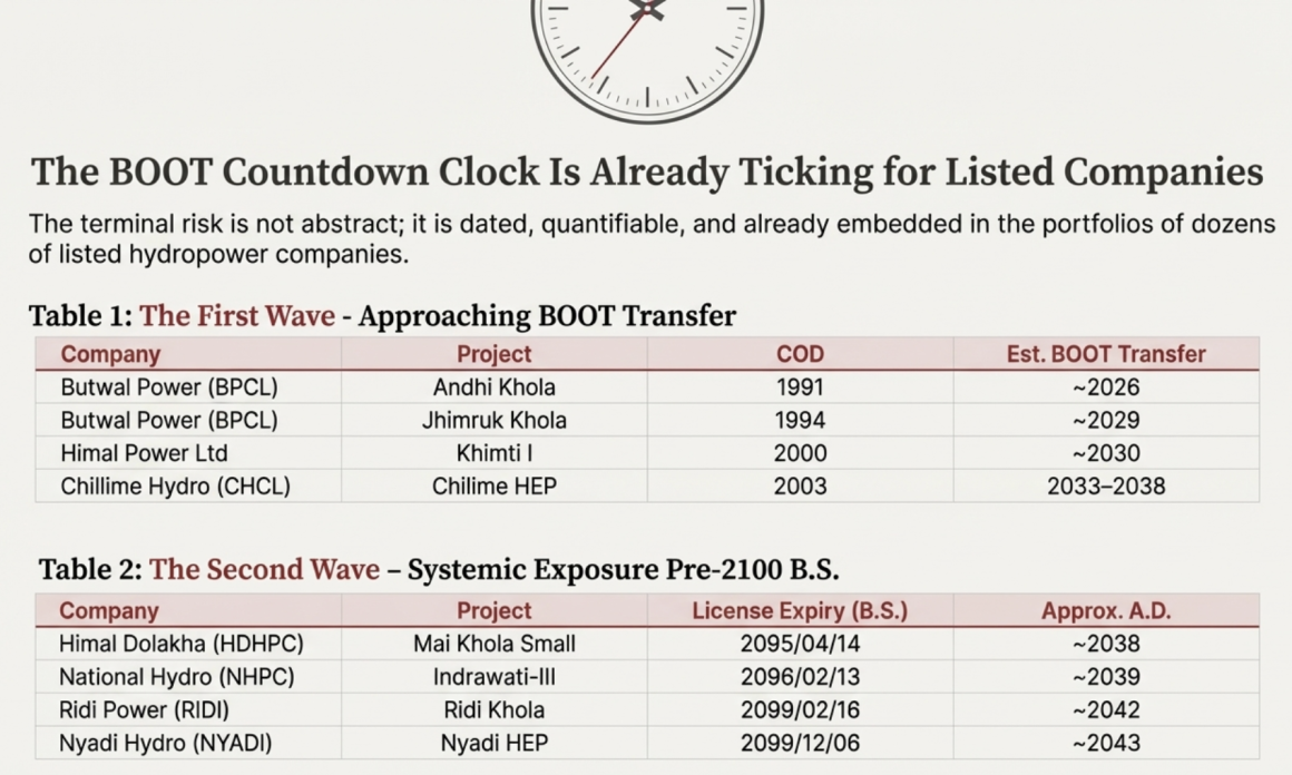 The BOOT risk is not abstract or theoretical. It is dated, quantifiable, and already embedded in the portfolios of listed hydropower companies.