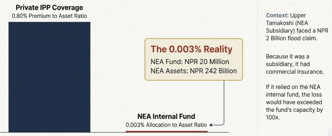 NEA’s operational assets are severely underinsured with only NPR 20 million allocated annually (0.003-0.008% of asset value) against a PPE base of NPR 242 billion