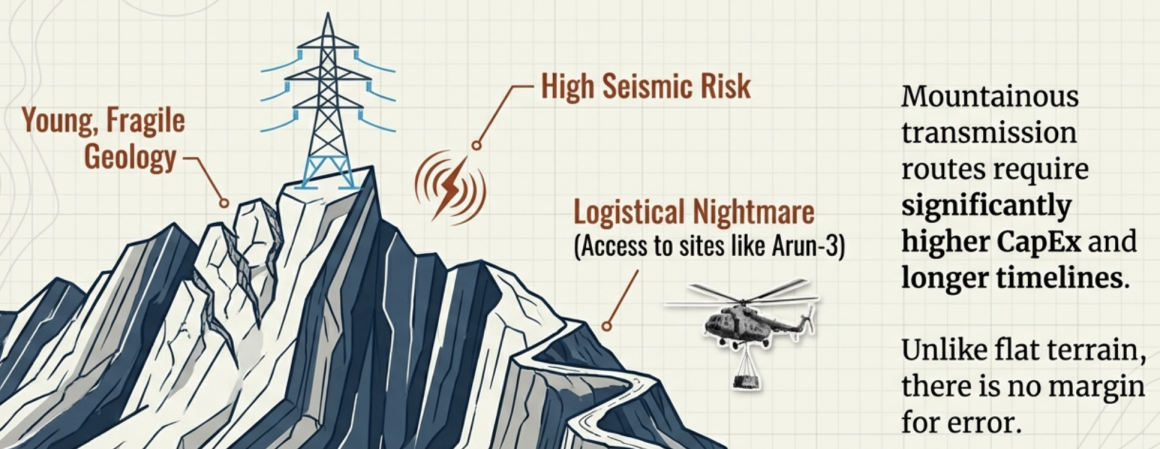 - Terrain Constraints: Construction in high Himalayan regions, such as Chilime-Kerung and Kimathanka-Latse, requires specialized engineering for “Power Sky Roads,” reflecting the extreme geographical challenges.