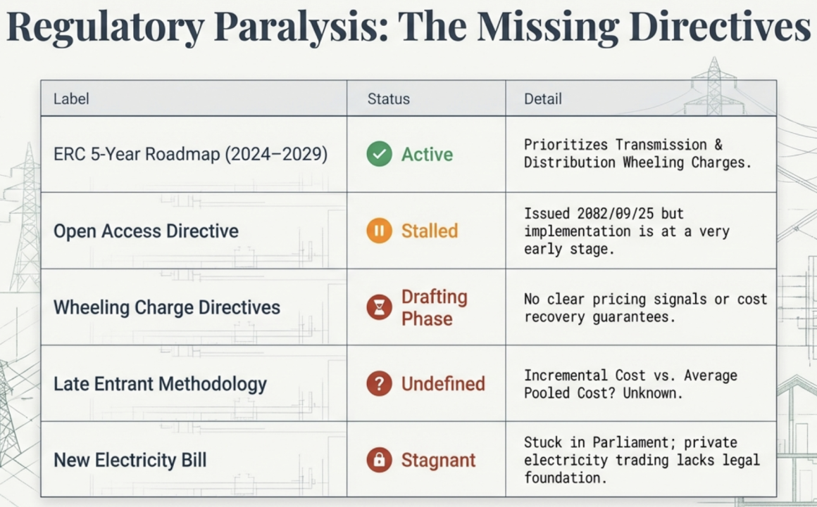 Until the ERC formally issues binding wheeling charge directives, private investors cannot be legally assured that they will be allowed to collect these revenue components. This regulatory uncertainty significantly complicates financial closure and remains a major barrier to private sector participation in transmission infrastructure.