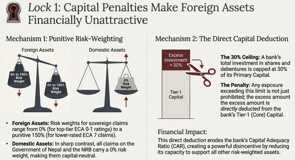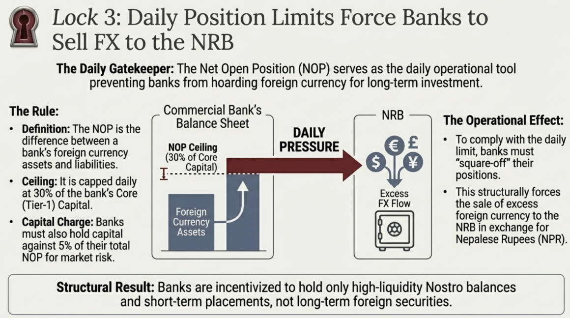 • Practical Implication: This ensures that even when banks mobilize foreign funding, it must be deployed into the Nepalese economy and cannot be recycled into foreign assets.