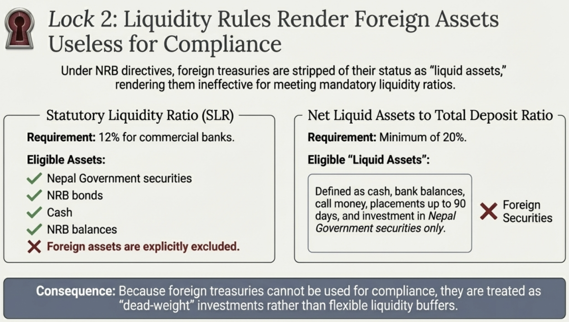 Under NRB directives, foreign treasuries are stripped of their status as “liquid assets,” rendering them ineffective for meeting mandatory liquidity ratios.